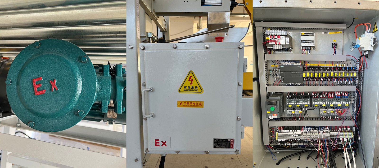 目前艾訊的主營產(chǎn)品開封箱機、打包機、纏繞機以及輸送機均可制作防爆機型。